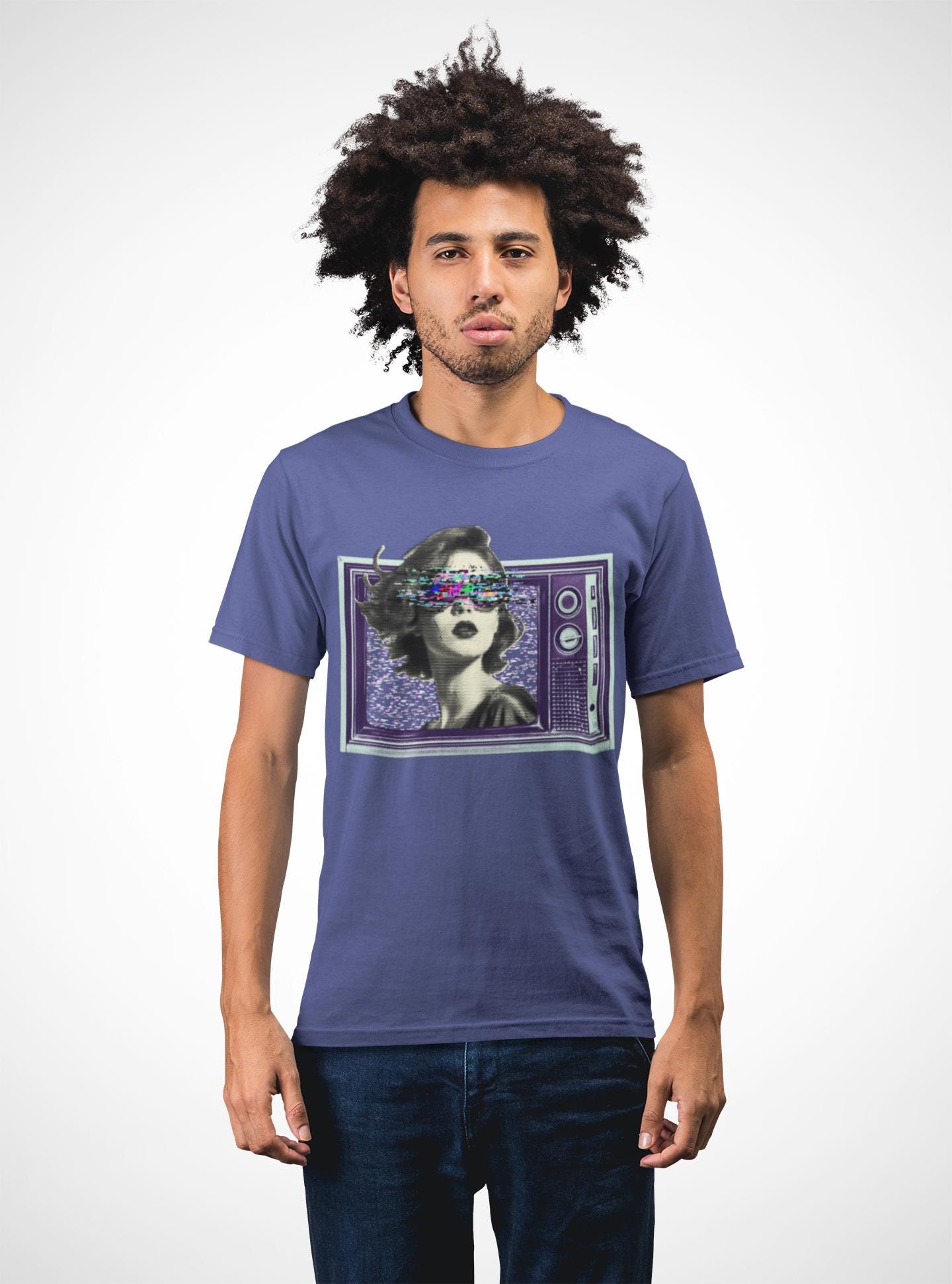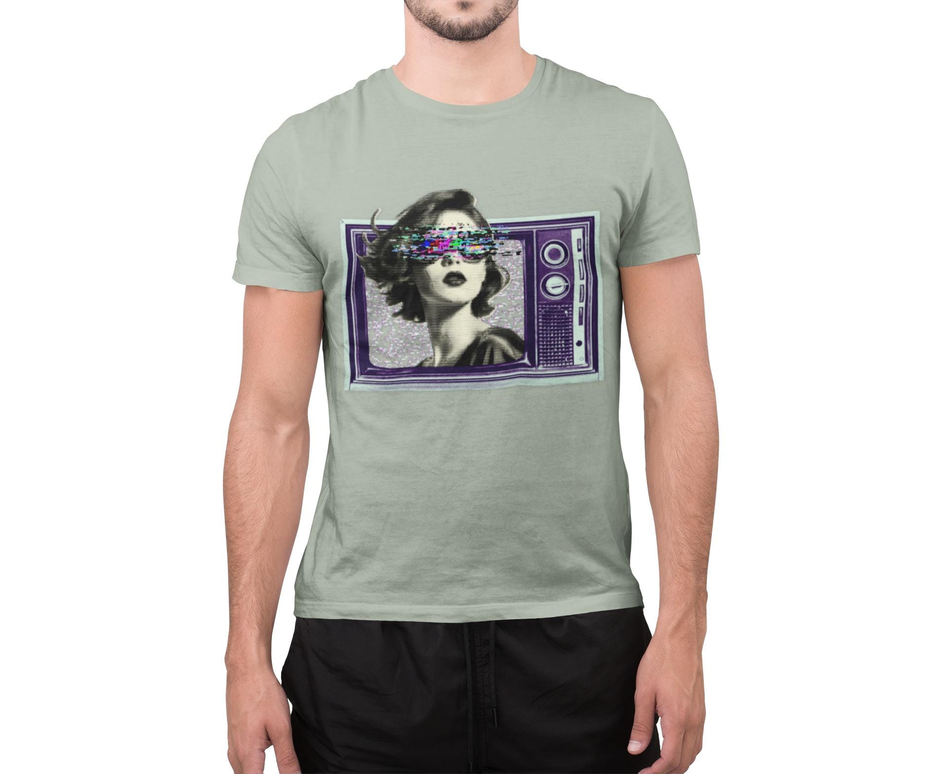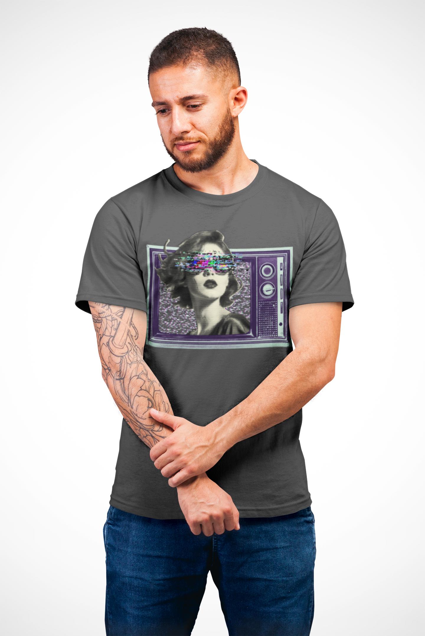 Before HD, cathode ray tube was the fuzzy overlord in every household. Embrace the nostalgic charm of static and questionable reception with this eye-catching (and possibly eye-straining) design. It's like wearing your old television set, but much softer and less likely to electrocute you. Made from very soft materials, this tee is 100% cotton for solid colors.