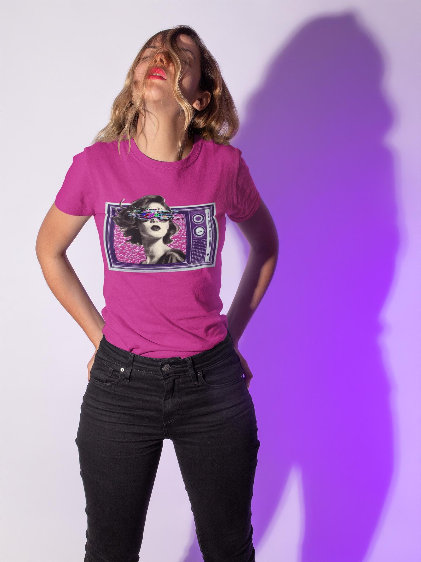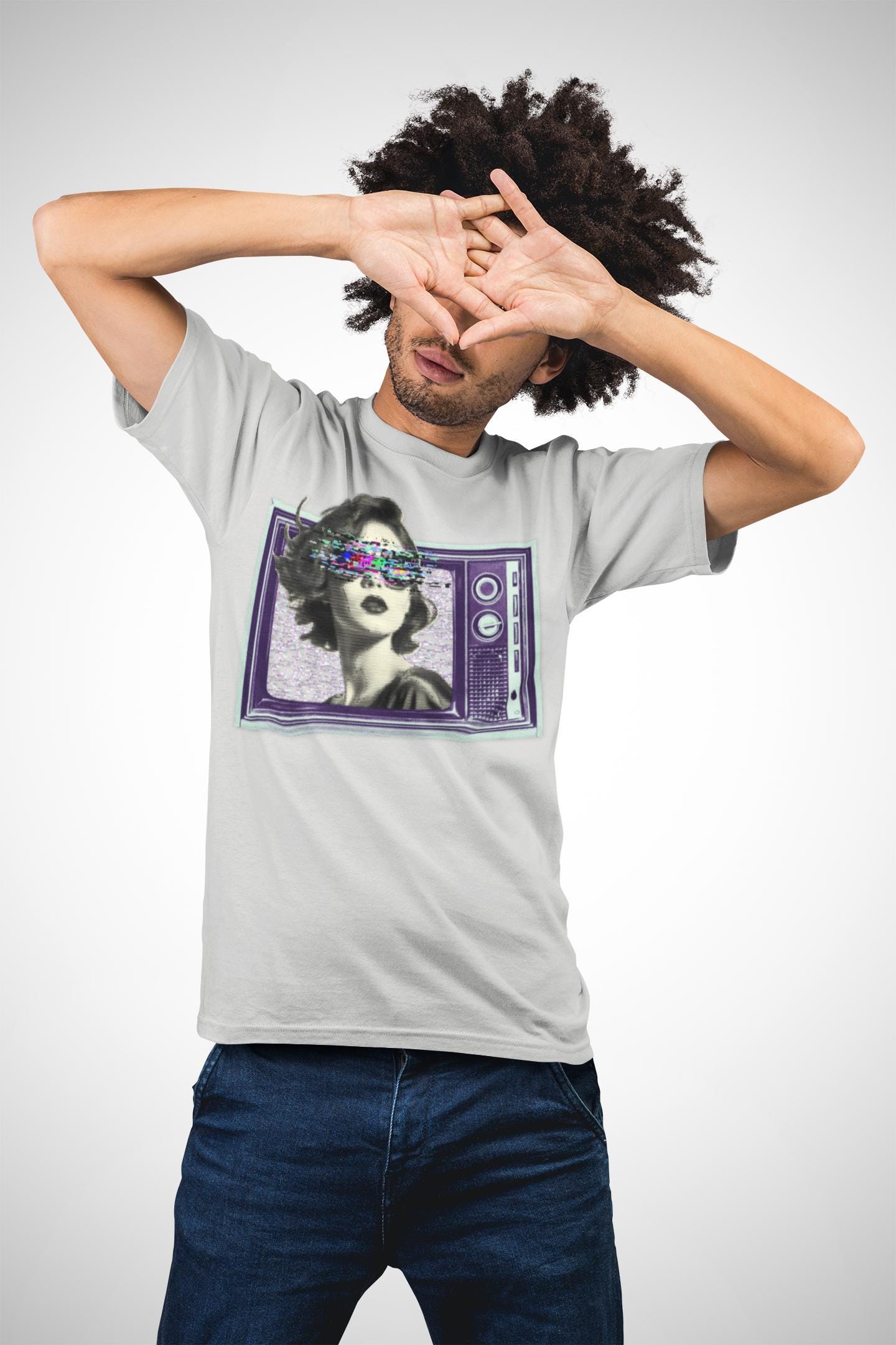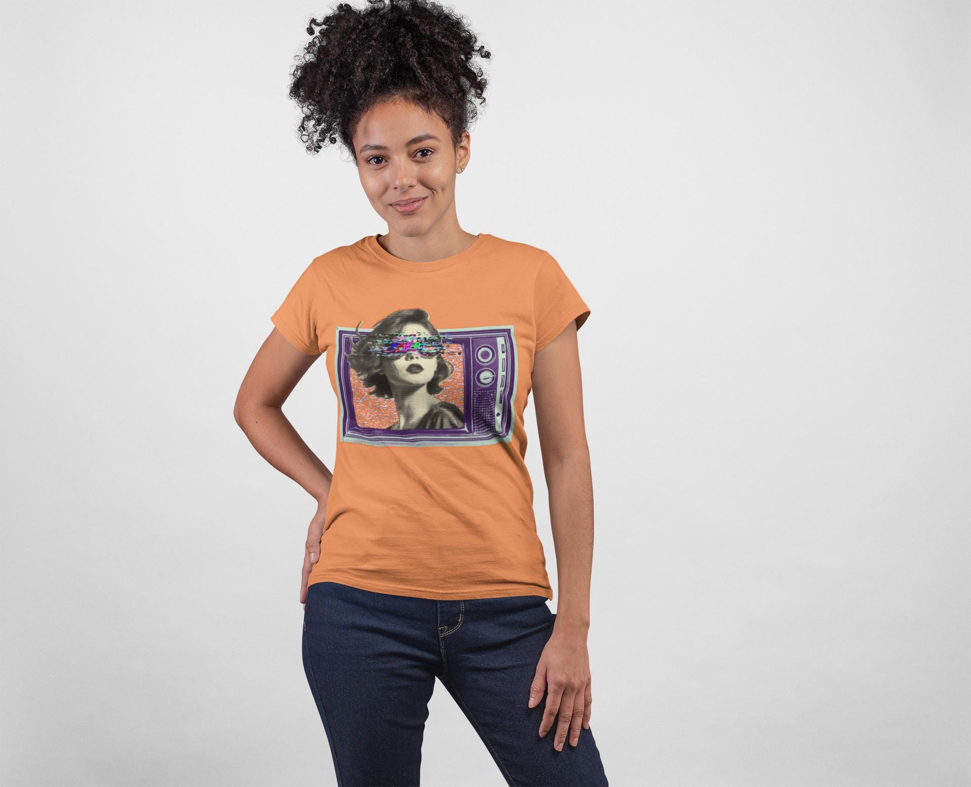 Before HD, cathode ray tube was the fuzzy overlord in every household. Embrace the nostalgic charm of static and questionable reception with this eye-catching (and possibly eye-straining) design. It's like wearing your old television set, but much softer and less likely to electrocute you. Made from very soft materials, this tee is 100% cotton for solid colors.