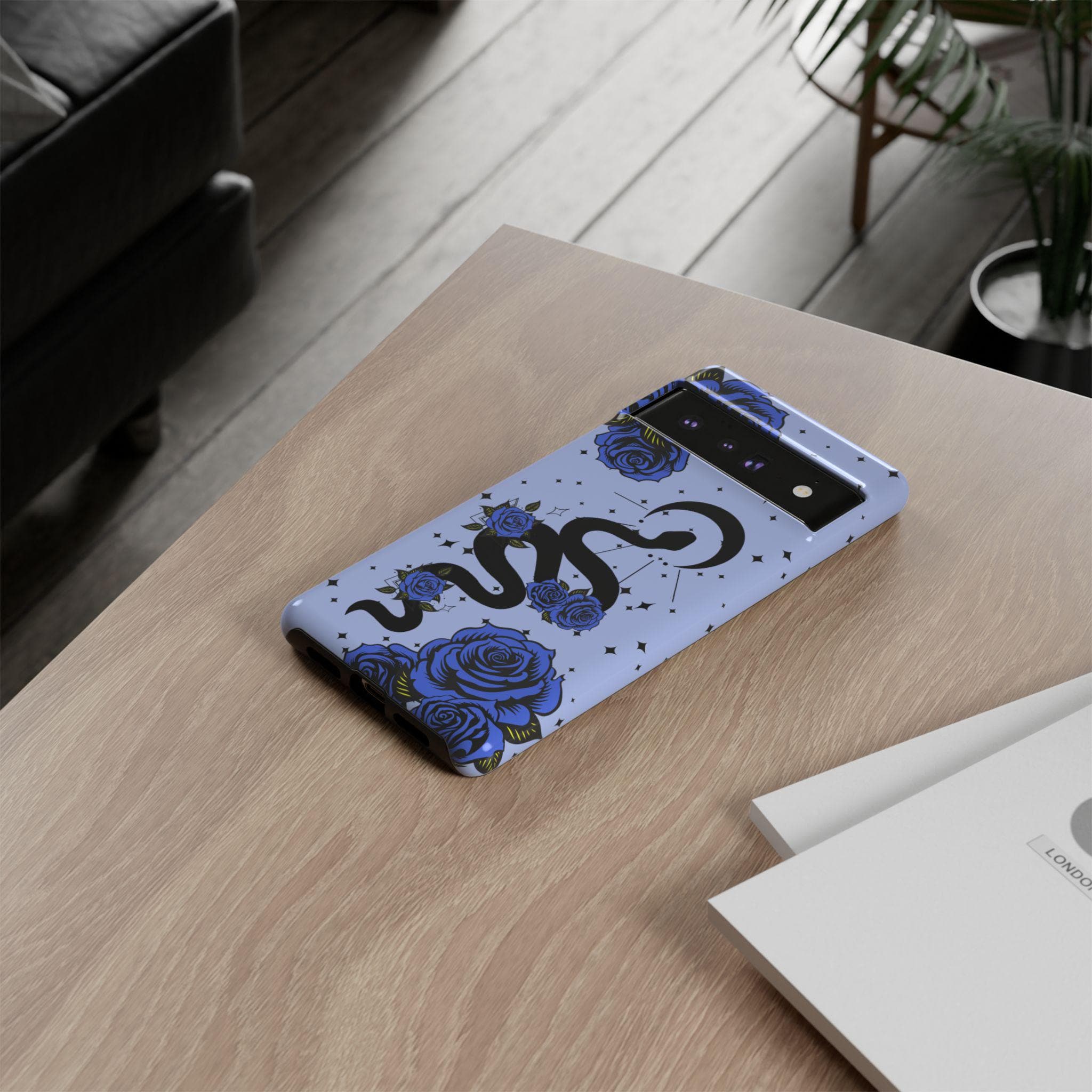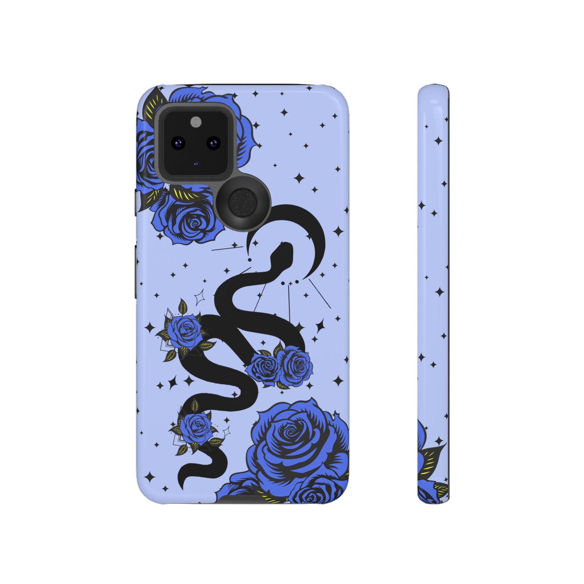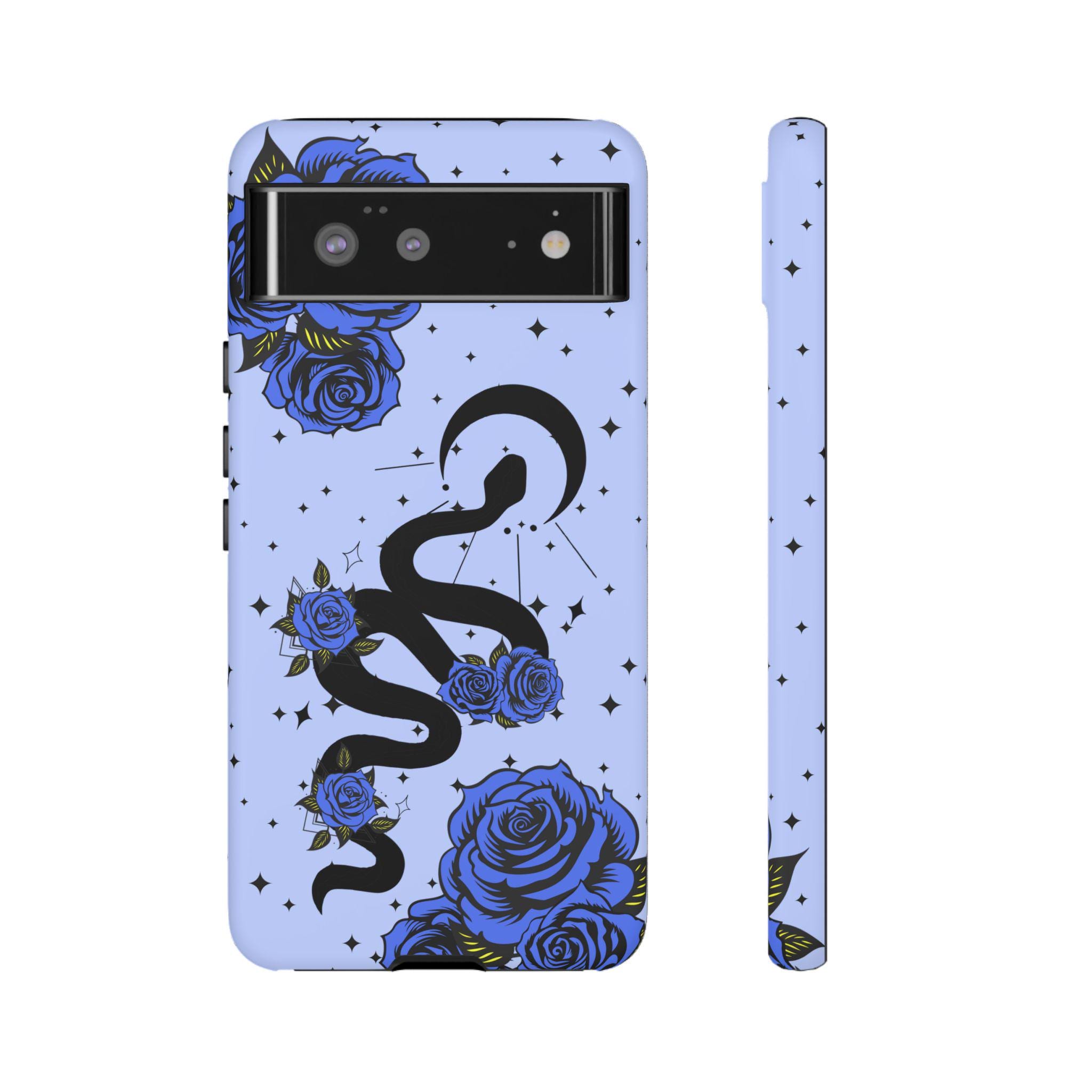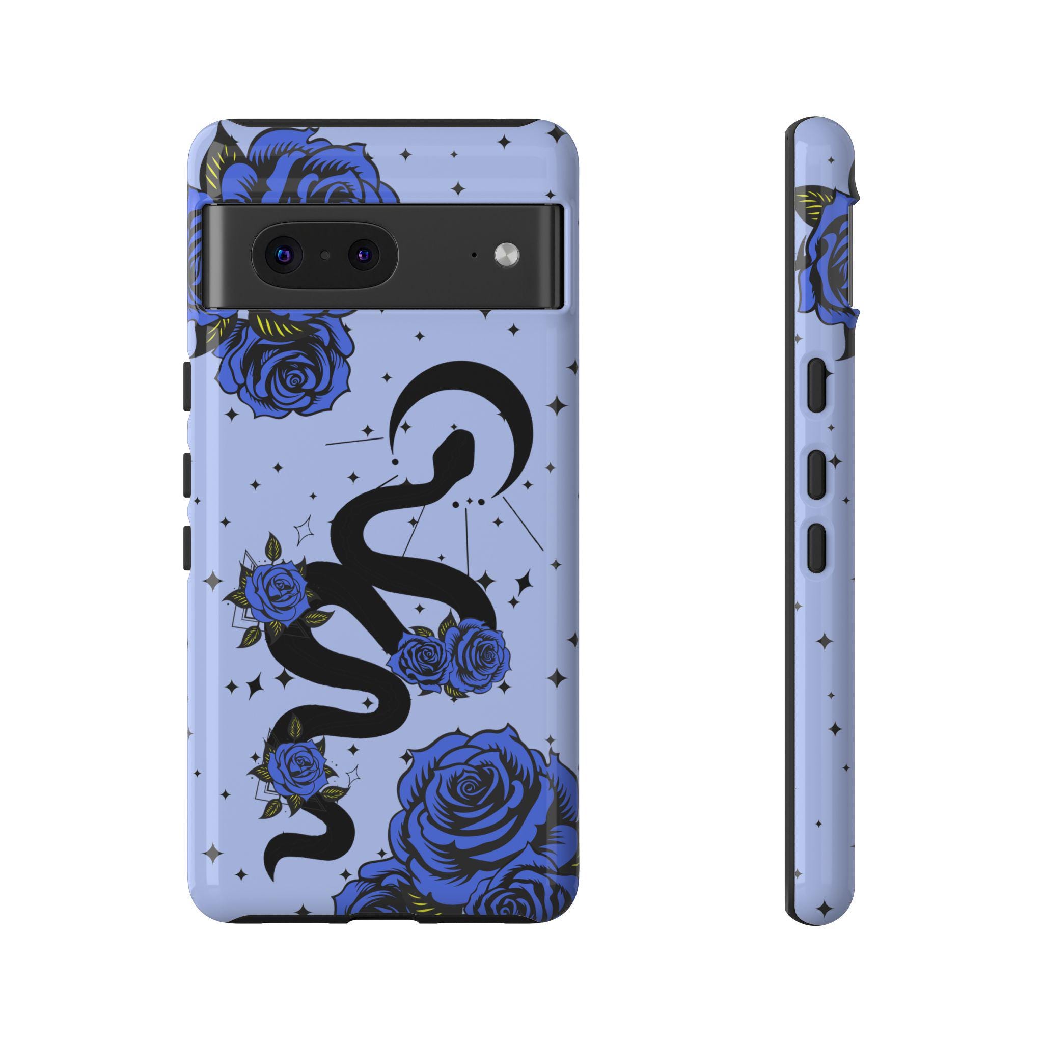 Transform your phone into a cosmic masterpiece with our striking Google Pixel phone case for Android featuring a quirky Blue Rose Snake Moon Design. Not only does this eye-catching design add a touch of celestial magic to your device, but it also ensures maximum protection from those pesky drops and scratches!