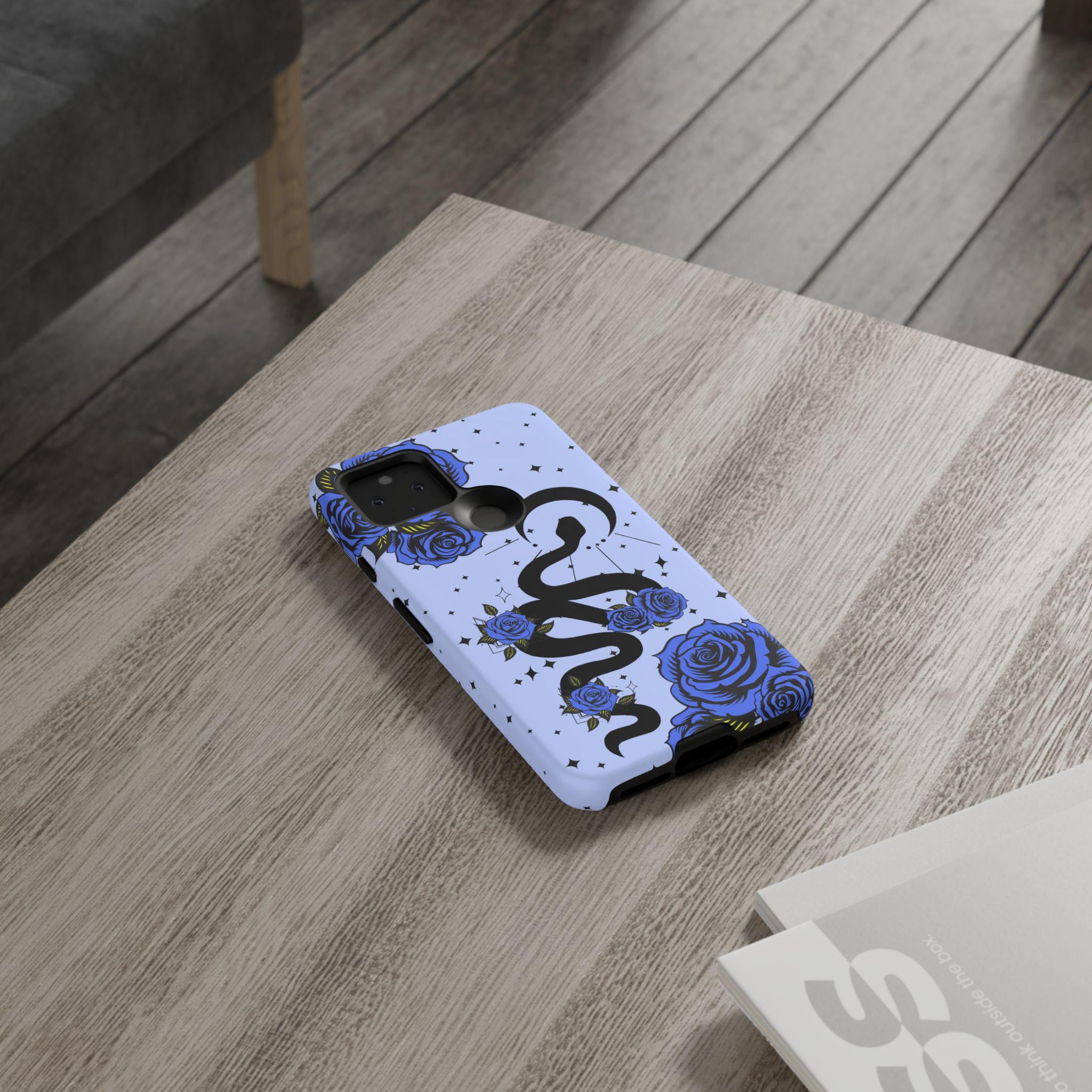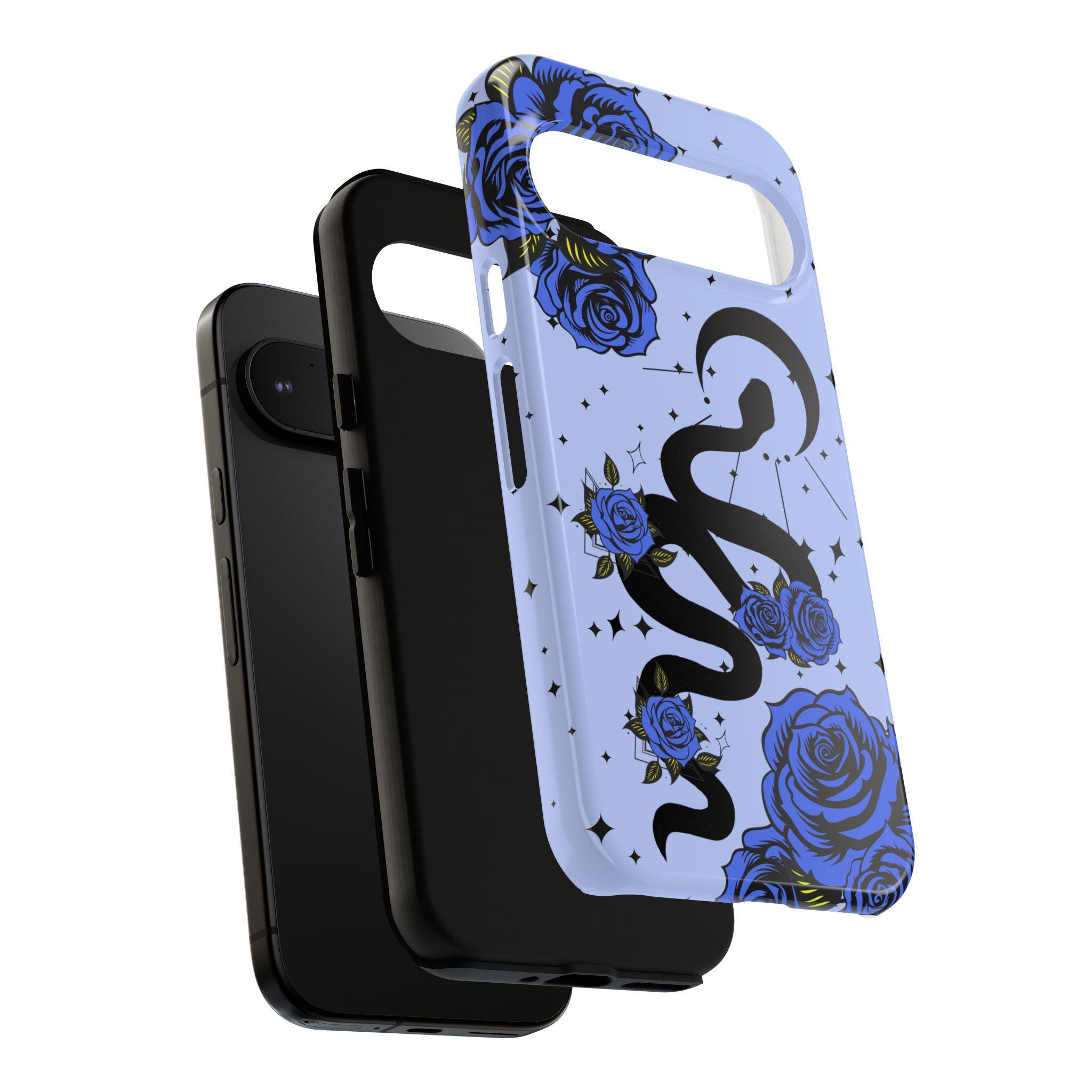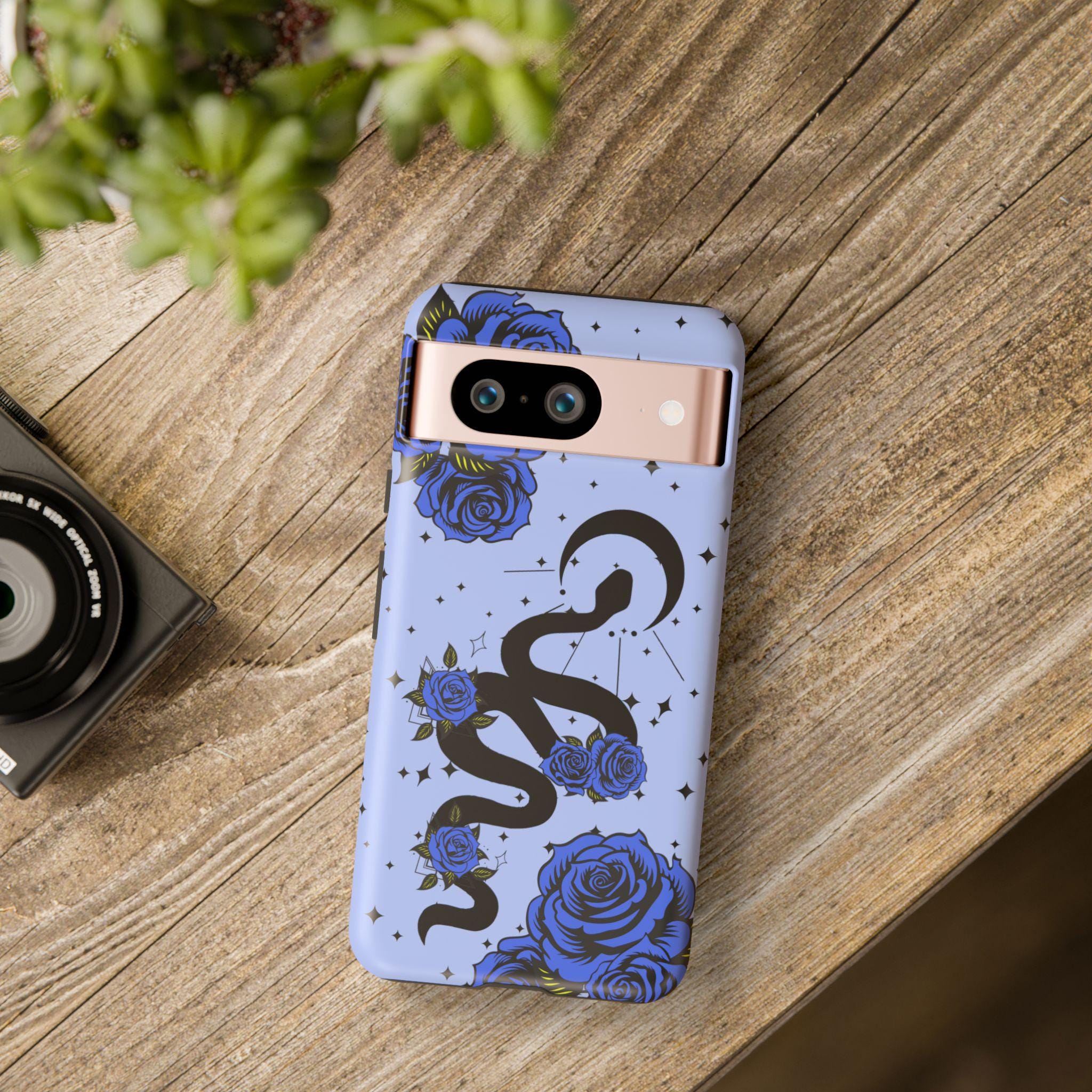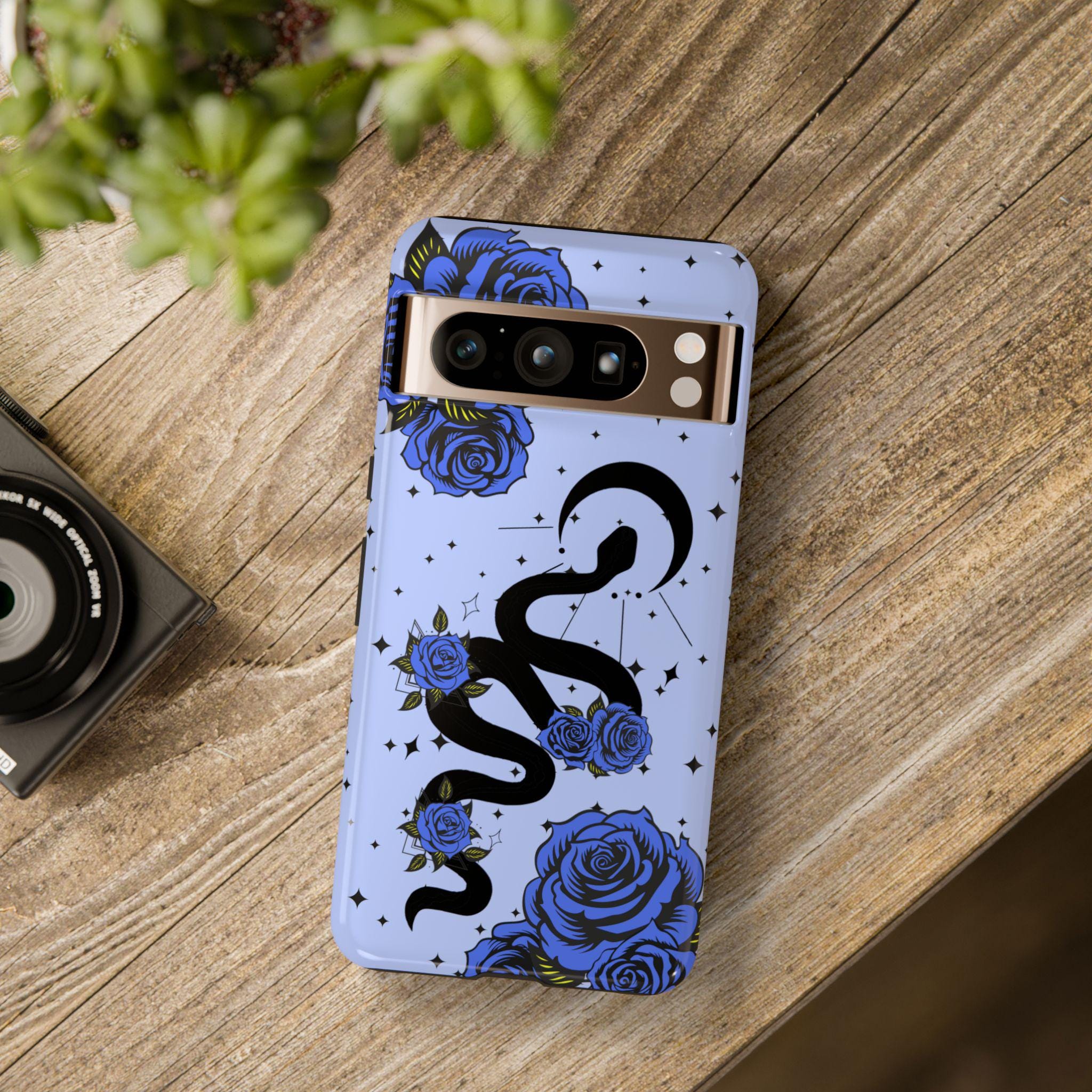 Transform your phone into a cosmic masterpiece with our striking Google Pixel phone case for Android featuring a quirky Blue Rose Snake Moon Design. Not only does this eye-catching design add a touch of celestial magic to your device, but it also ensures maximum protection from those pesky drops and scratches!