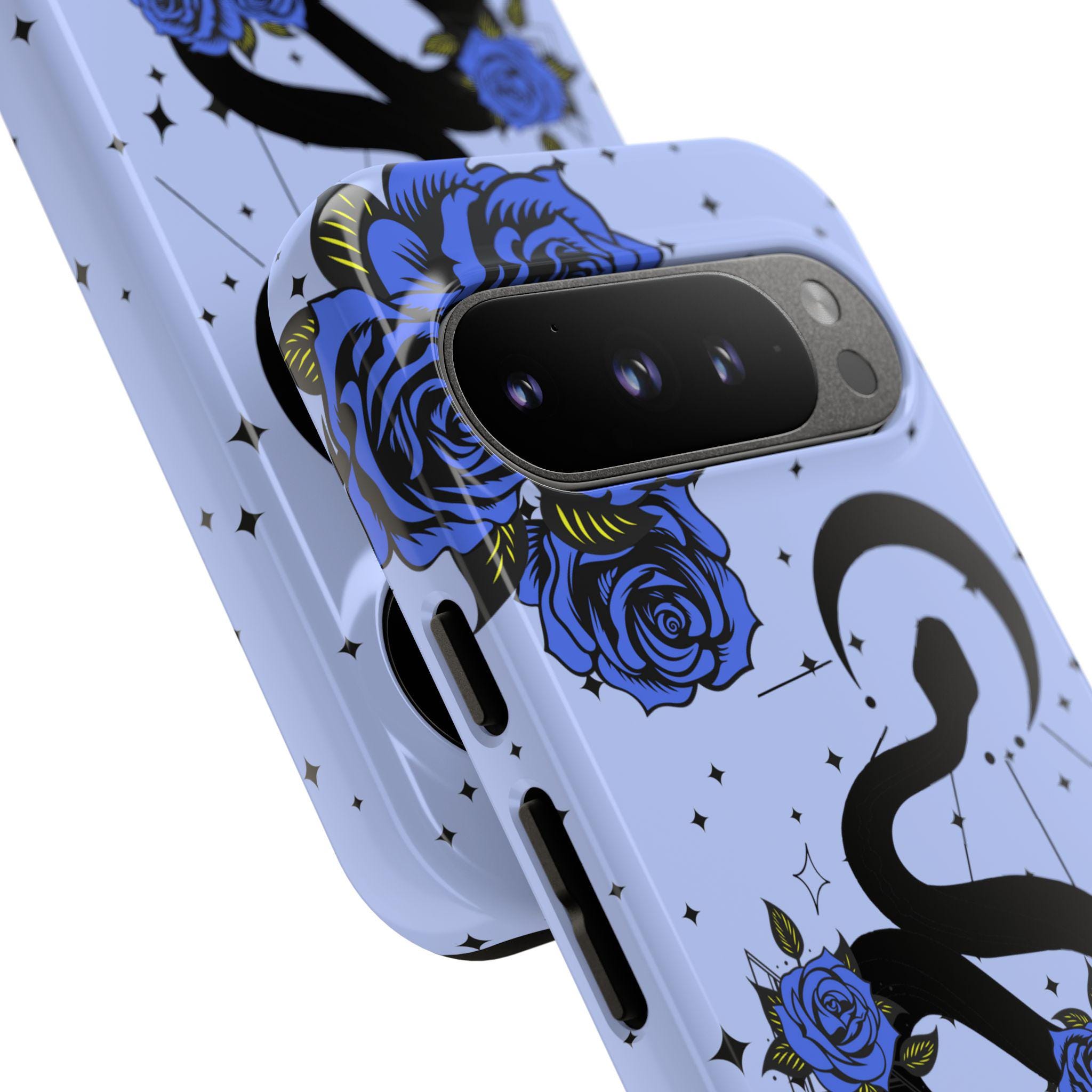 Blue Rose Snake Moon Google Pixel Case: Celestial Android Cover